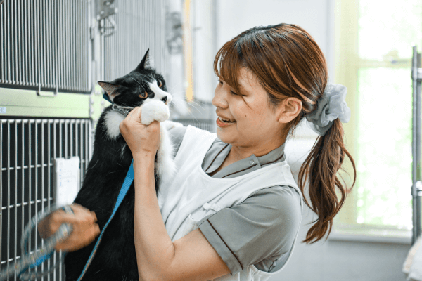 獣医師の手伝いではなく、獣医師とはちがう目線で患者さんに寄りそう感覚で接しています。私たちは、動物が好きです。具合の悪い子が寄り添っていくと元気になる姿を見るときほど嬉しいことはありません。仕事としてのプロフェッショナルを忘れません。フルタイムで勤務出来る看護師を募集していますが、パートタイムご希望の方も大歓迎です。是非一度見学にお越し下さい。