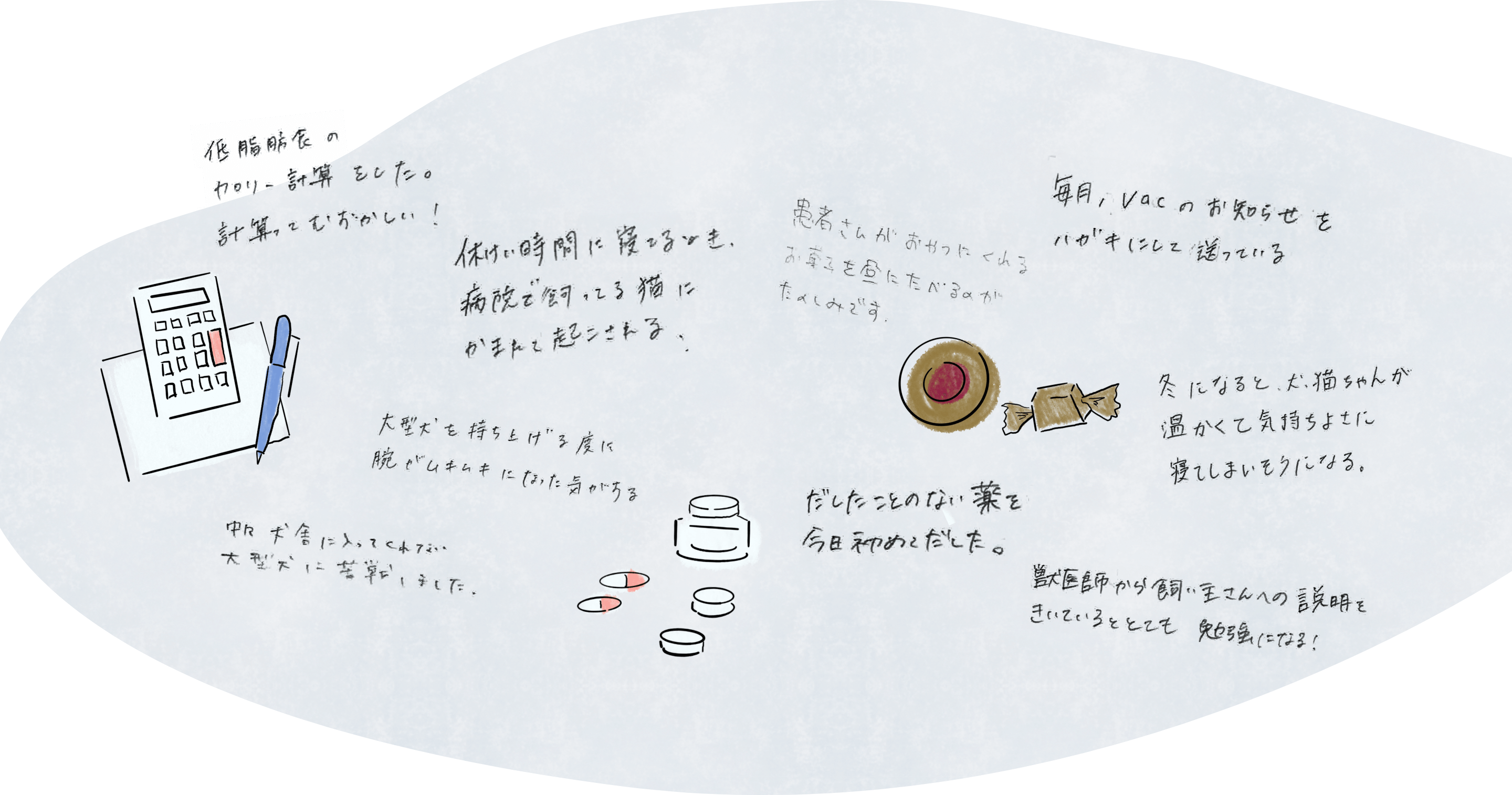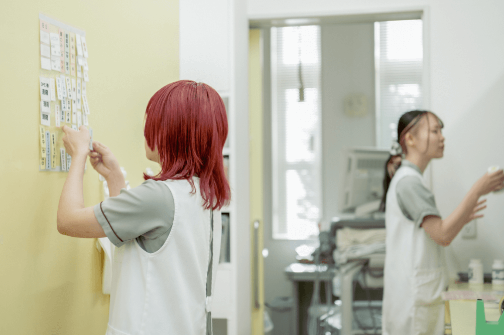 気づいたことはカルテに書いて情報共有をします。もし緊急性高いことがあれば、すぐに先生に伝えます。